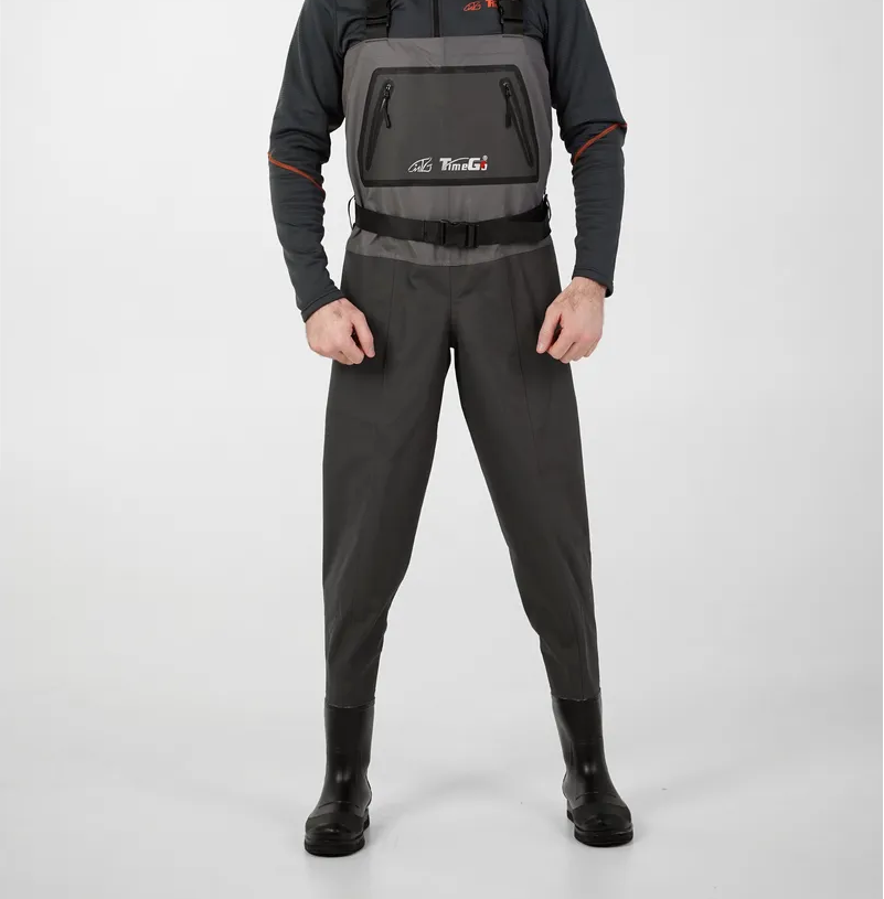 Усиленные мембранные вейдерсы с сапогами на войлочной подошве Time Go - незаменимая экипировка рыболова при забродной рыбалке! Вейдерсы выполнены из износостойкой ткани с мембраной HARD-TEX, имеют минимальное количесто герметично проклеенных швов. Уникальность мембранной ткани состоит в том, что она не пропускает воду и одновременно позволяет одежде дышать, имеет высокую износостойкость, а главное намного легче неопрена или аналогичных прорезиненных полукомбинезонов. Анатомический крой обеспечивает комфортную посадку изделия на тело, костюм не стесняет движения. Верхняя часть вейдерсов облегчена, а нижняя часть усилена двойным слоем, на забродниках имеются внешние карманы, подтяжки на груди и поясной ремень на замке, резиновые сапоги с войлочной подошвой - уменьшают возможность скольжения в воде на каменистом или илистом дне. Водонепроницаемость: 20 000 г/м²/24ч, дышащая способность: 7 000 г/м²/24ч. Данные вейдерсы можно использовать как на рыбалке, так и при езде на квадроцикле, либо при прогулках в непогоду по лесу!