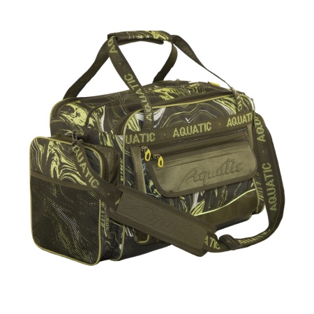 Сумка среднего размера Aquatic для хранения и транспортировки рыболовных принадлежностей изготавливается из полиестеровых, непромокаемых тканей 600×600D. В сумке имеются: 2 объемных боковых кармана и один передний. На переднем кармане расположен узкий карман для ножа, фонаря или другого инструмента. Данная сумка найдет широкое применение в разных областях жизнедеятельности. Размеры: 50×26×30 см.