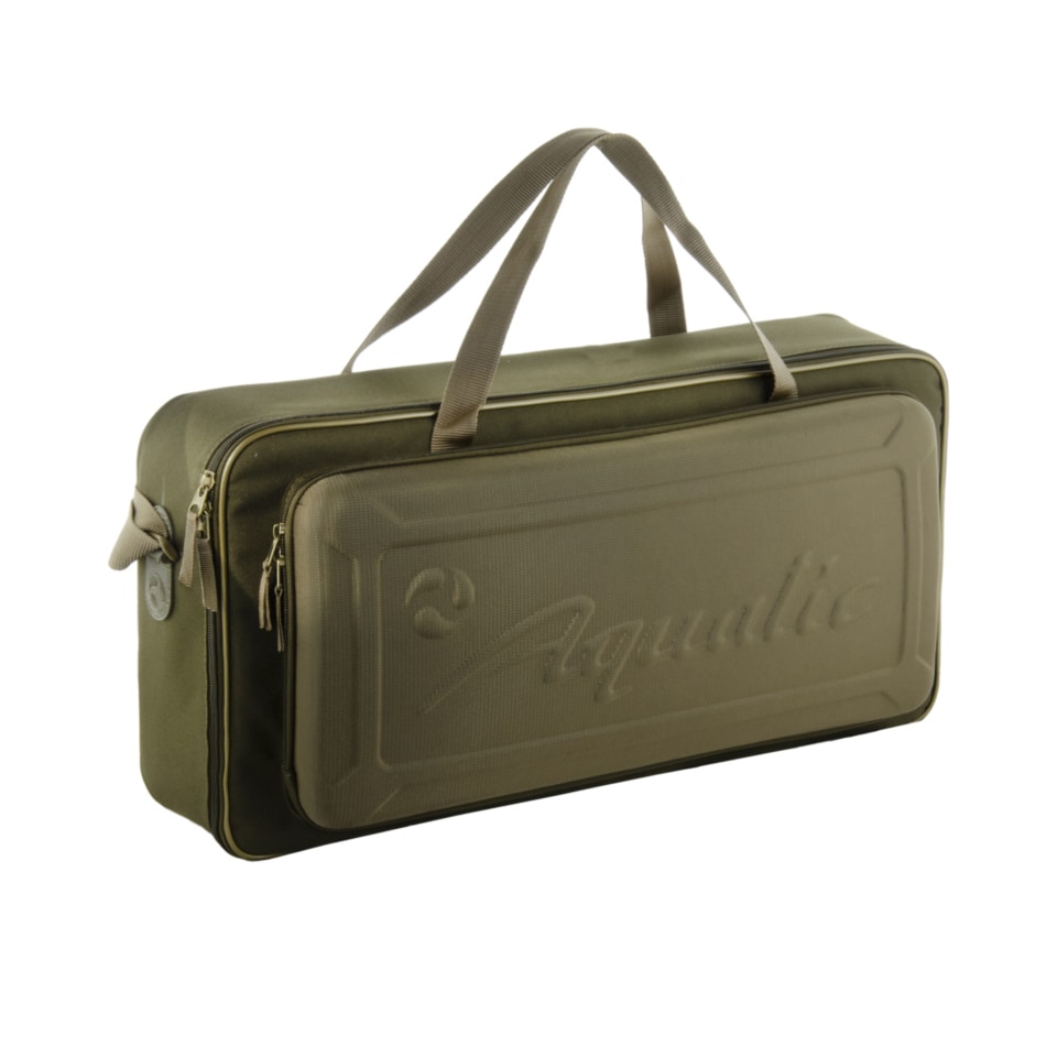 Универсальная рыболовная сумка Aquatic С-48 для хранения и транспортировки снаряжения для всех видов ловли: спиннинг, фидер, карпфишинг, поплавочная ловля и т.д. Благодаря продуманной конструкции сумка достаточно вместительна и в то же время очень компактна, ее можно легко разместить под задним стеклом автомобиля, когда машина уже полностью загружена. Сумка выполнена в виде жесткого кофра с большим формованным карманом на крышке, плотные боковые стенки обеспечивают дополнительную жесткость конструкции. Двойная ручка и плечевой ремень для комфорта транспортировки, надежная двухсторонняя молния. На внутренней стороне крышки расположены 4 отделения для мелочей и дополнительные крепления для рыболовных инструментов. Внутренние перегородки трансформируются по вашему желанию с помощью липучек. Габаритные размеры основного отделения: 64х32х12 см. Габаритные размеры кармана: 55х25 см. Вес: 1,95 кг.