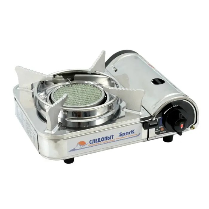 плита газовая размер 256х215х102мм масса 1,1кг мощность горелки 0,71 кВт тип горелки закрытая с керамической поверхностью потребление газа 60г/час тип розжига пьезо-электро тип топлива пропан/бутан диаметр форсунки 0,48мм тип баллона нажимной, с цанговым захватом номинальное давление используемого газа 220г. 0,25-0,69МПа