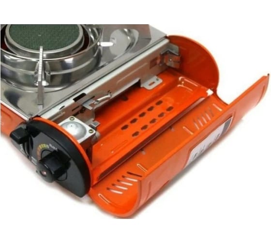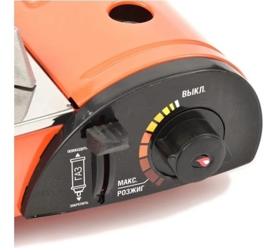 Плита оборудована системой пьезоэлектрического розжига горелки и блоком управления подачей газа, а на время хранения и транспортировки размещается в пластиковом кейсе.