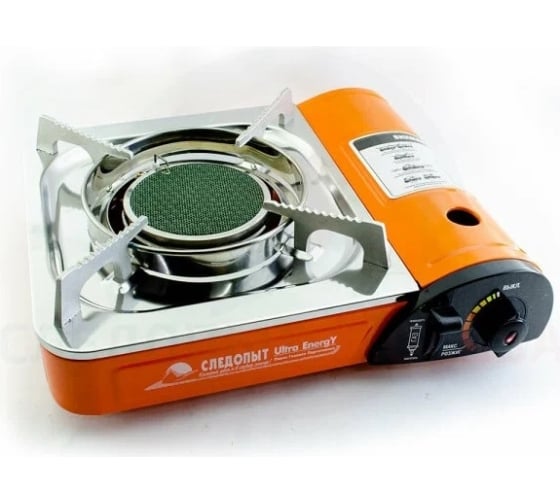 Технические характеристики Следопыт ultraenergy Назначение для приготовления пищи Мощность 1500 Вт Питание газ Количество конфорок 1 шт Цвет оранжевый Соединение баллона цанговое/резьбовое Пьезоподжиг да Габариты без упаковки 330х290х90 мм Вес нетто 1.74 кг