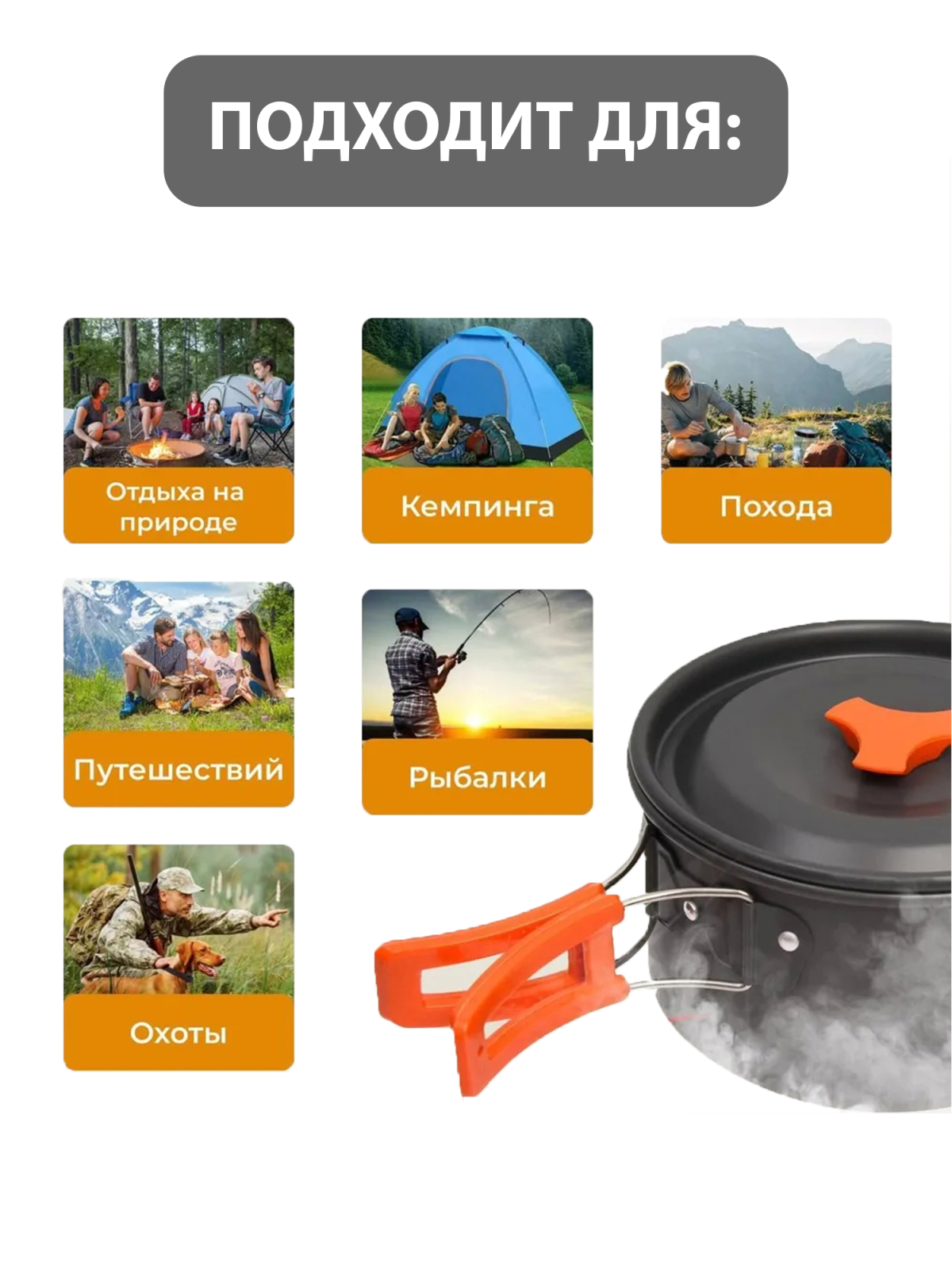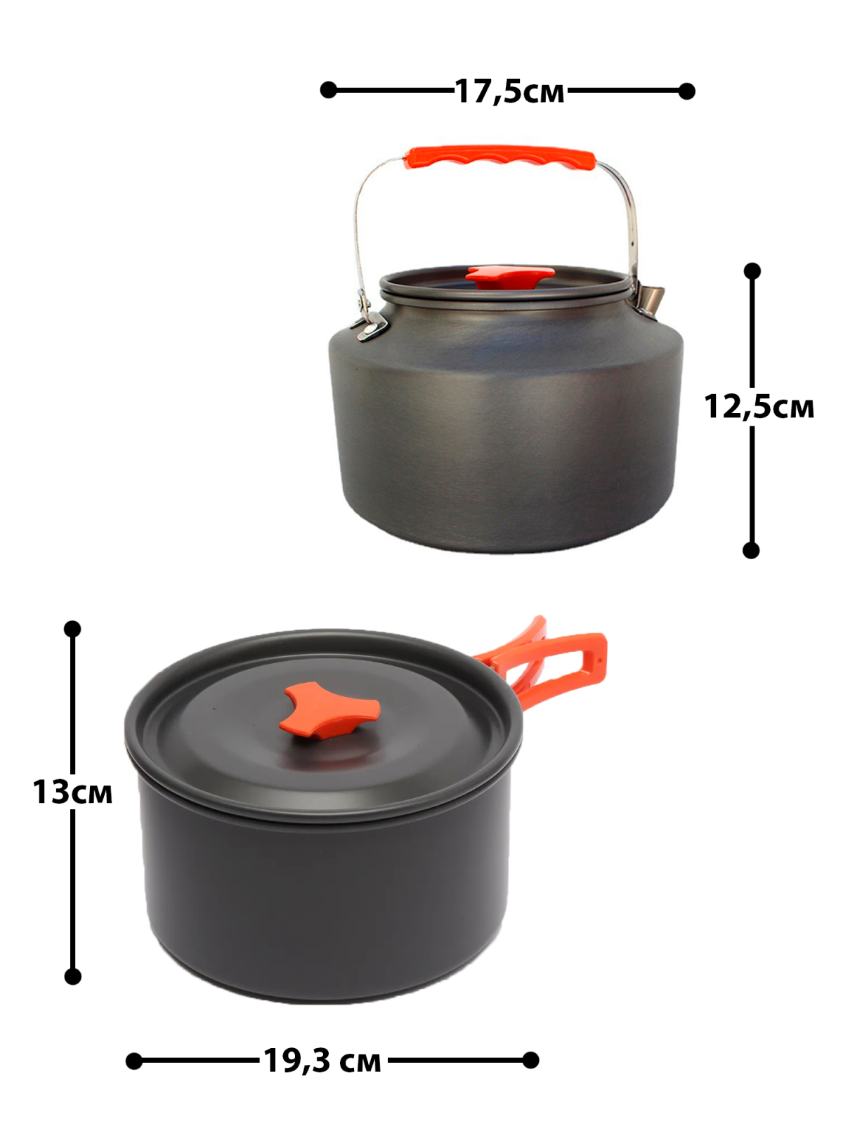 Кастрюля - 3л. Чайник - 2л. Сетчатый мешок с утяжкой для хранения и транспортировки Материал - пищевой анодированный аллюминий