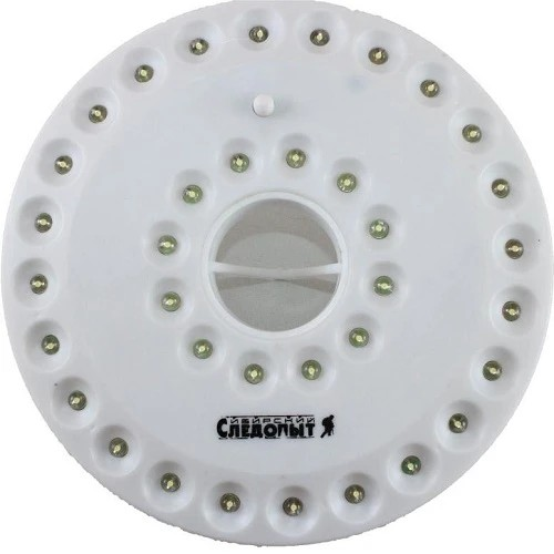 Кемпинговый подвесной фонарь «Сибирский Следопыт - Лунный свет-36» - удобный осветительный прибор, оснащенный петлей-подвесом, при помощи которой фонарь легко разместить внутри палатки или закрепить на ветке. Также имеется крепление для настенного размещения. Равномерное яркое освещение на достаточно большой площади обеспечивают 36 LED-светодиодов. Питание фонаря осуществляется от четырех алкалиновых батареек типа АА. Простота и надежность устройства, высокая яркость, низкое энергопотребление – преимущества этого фонаря. Фонарь отлично подойдет в качестве потолочного светильника для освещения кемпинга, туристического лагеря, палатки, дачного домика, веранды. Основные ОСОБЕННОСТИ и ПРЕИМУЩЕСТВА фонаря «Сибирский Следопыт - Лунный свет-36»: • Три режима работы; • Низкое энергопотребление; • Питание от батареек типа АА. Кемпинговый фонарь подходит для ИСПОЛЬЗОВАНИЯ: В БЫТУ и ПРОИЗВОДСТВЕ: • для освещения затемненных участков жилого и нежилого пространства; • внутри и снаружи помещений; ХАРАКТЕРИСТИКИ: • вес - 107 г • мощность – 4,5 В • количество светодиодов - 36 • количество режимов - 3 • габаритные размеры – 145*145*21 мм • комплектация элементом питания – нет • оттенок света – холодный белый